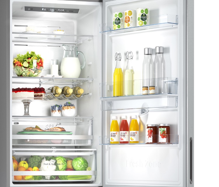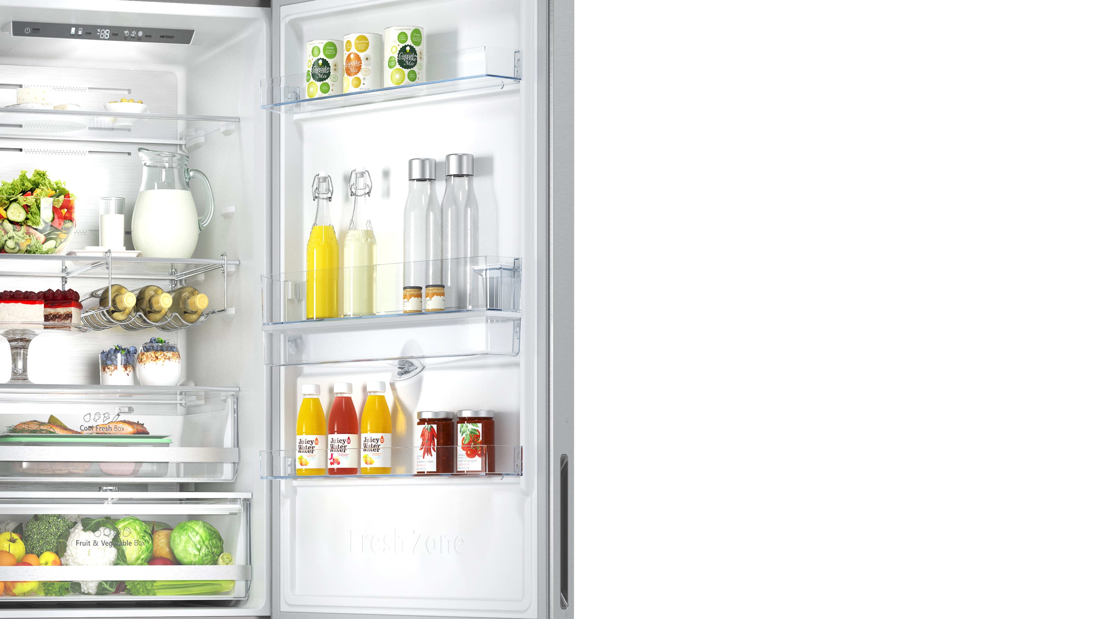 This smart cooling technology maintains even temperature throughout entire fridge. Small vents on the back column and its sides keep a stable environment inside the compartment, so you can simply place your groceries on whatever shelf you’d like. However, drawers for meat and fresh produce have specially dedicated temperature to keep them fresh for longer.